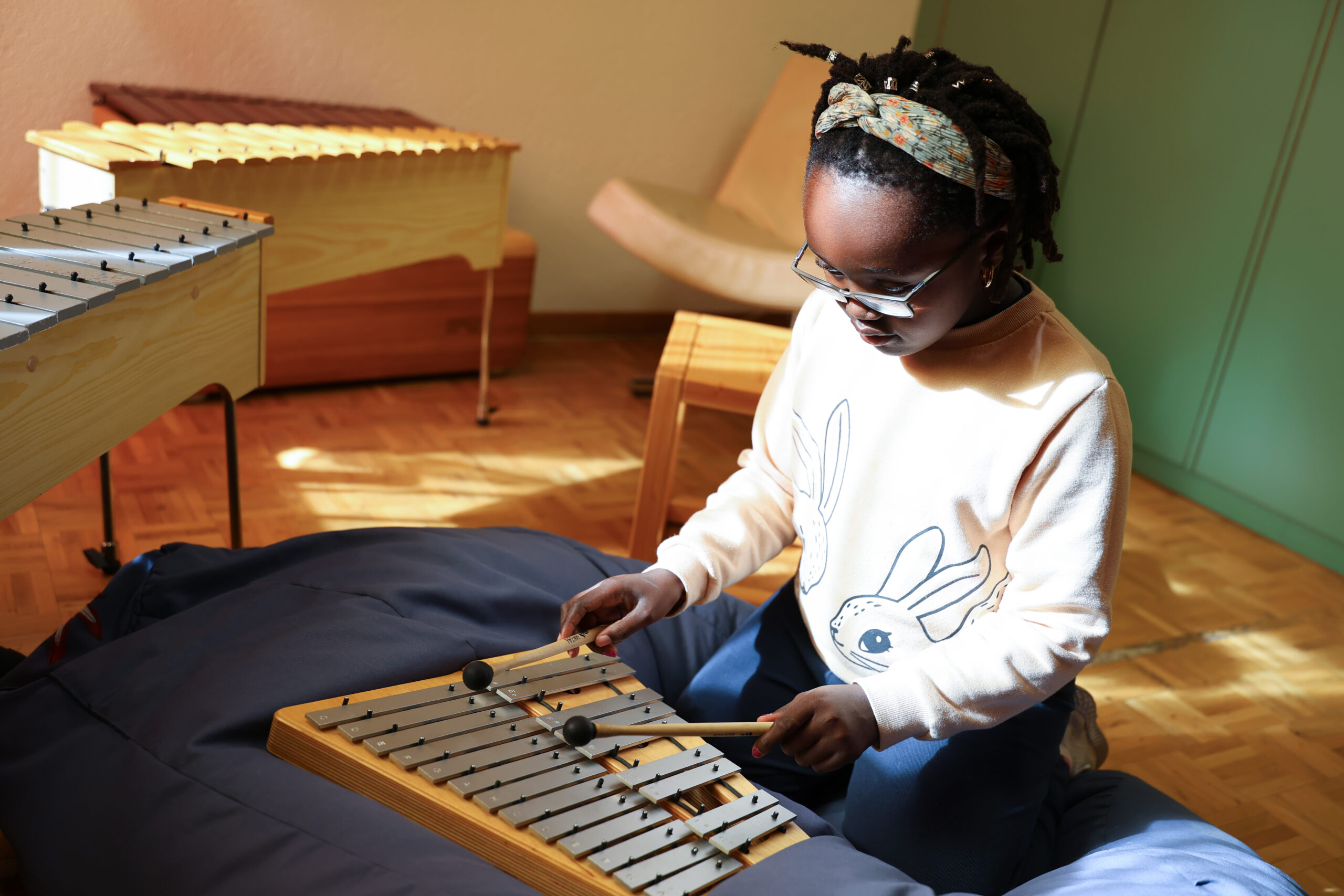 Die Musiktherapie findet als Einzel- oder als Gruppentherapie statt. Die Kinder werden auf musikalischen Therapiebedarf abgeklärt.